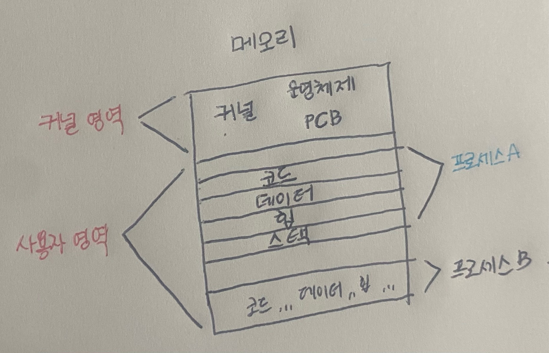 프로세스가 생성되면 메모리(RAM)의 커널영역에 PCB가 생성된다.